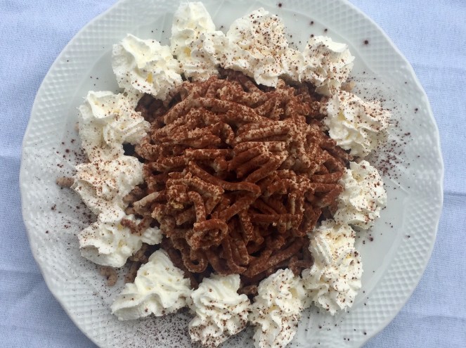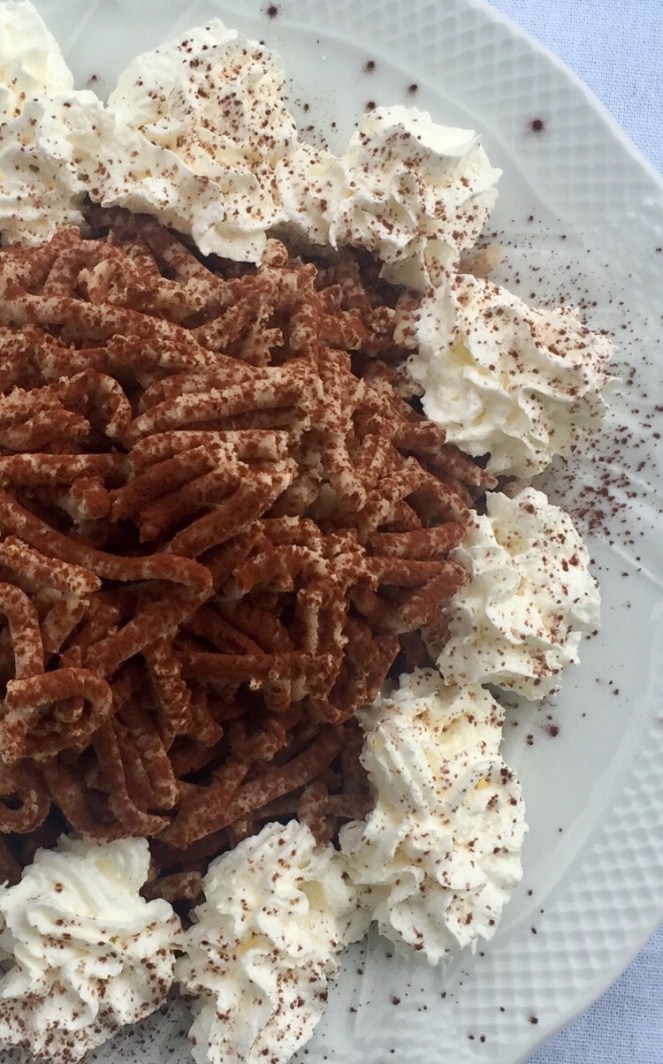 Questo è il nostro Mont Blanc: non c’è il rum, non è troppo dolce, profuma di vaniglia e si devono sentire tantissimo le castagne!